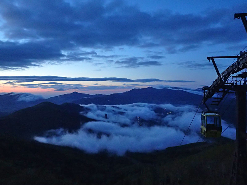 トマム方面では06時前後にかけてテラス付近の高さまで雲がかかりますが、次第に晴れてくる見込みです。