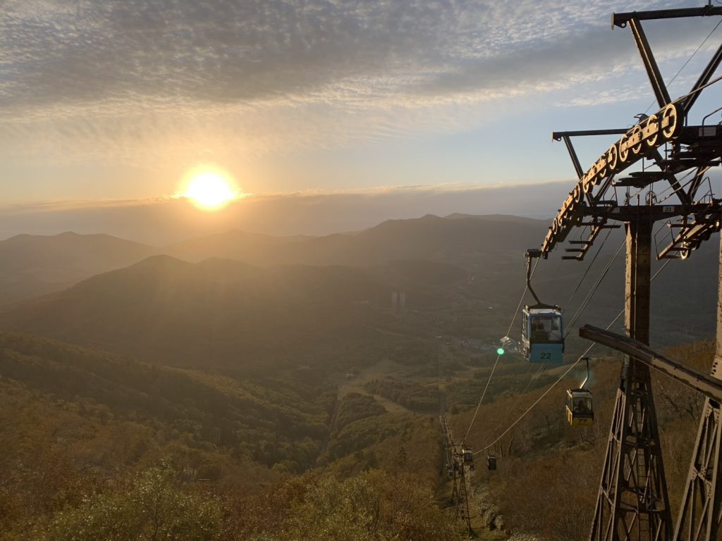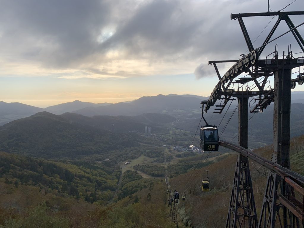 今朝の雲海テラスでは、雲海の発生はありませんでしたが、秋色に染まってきた山並みを見ることができました。白樺やハンノキの葉がだいぶ黄色く染まってきています。