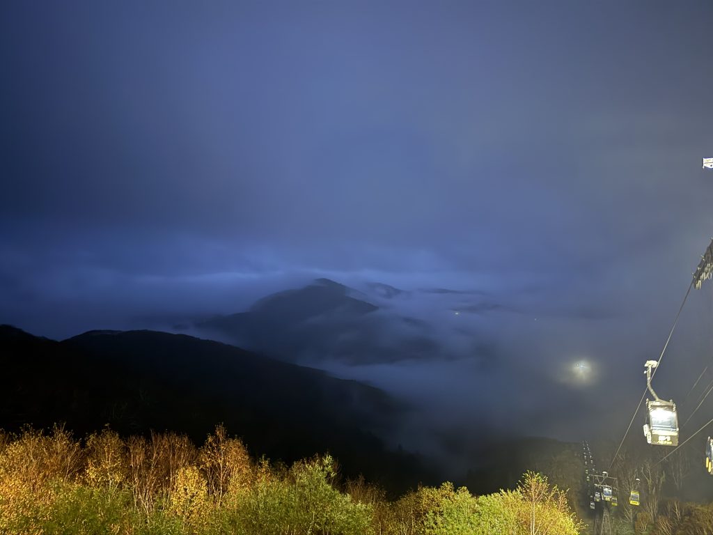 営業開始前には悪天候型雲海が出現していましたが、残念ながら営業開始と同時に雲海テラスは雲に包まれてしまいました。しかし、テラスへ向かう途中のゴンドラからは、雲海を見ることができたお客様もいらっしゃいました。