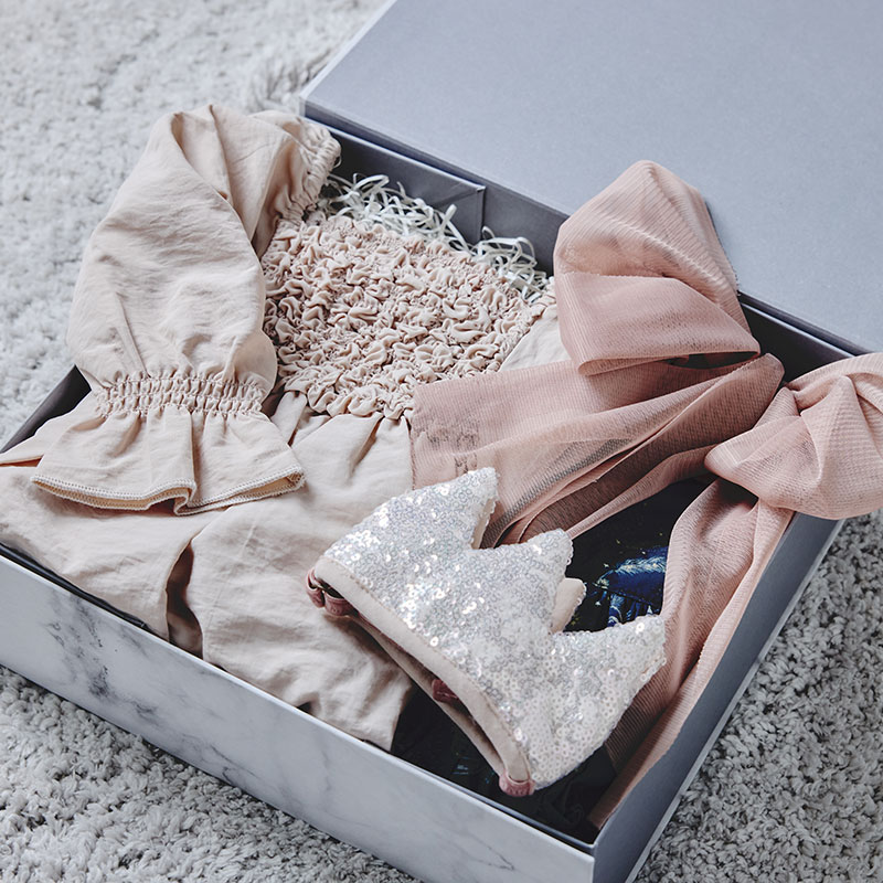 お祝いの日をおしゃれに迎えるためのバースデースタイリングボックスは6種類から選べます。お祝いにぴったりのドレスやリゾートらしいプレイウェアなど、お子様に似合うコーディネートを選ぶのも楽しい時間です。選んだセットはホテルに直接お届けするため、荷物の心配もいりません。