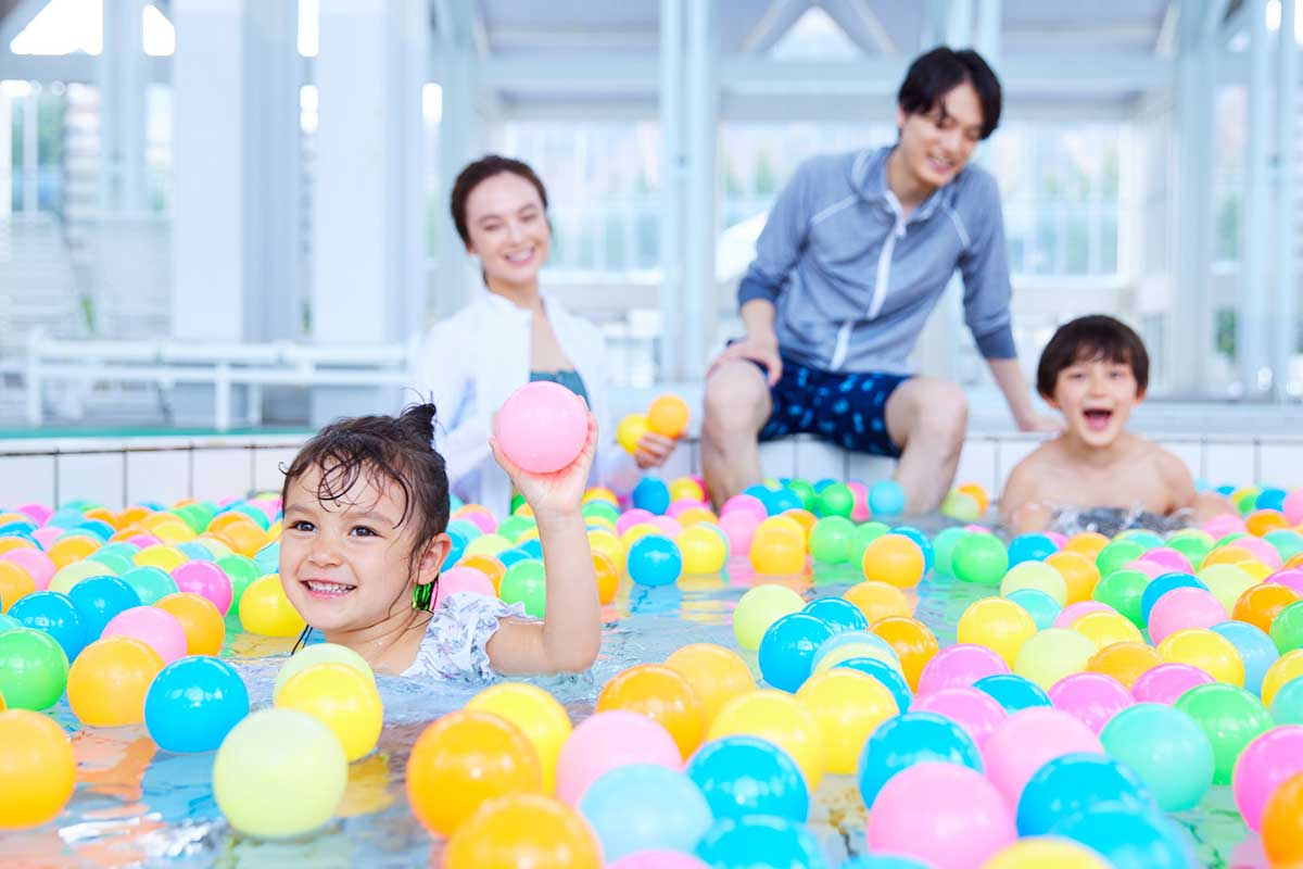 リゾート内のプール「ミナミナビーチ」には水深30cmのお子さま用プールがあり、はじめてのプール遊びにもおすすめです。 屋内プールのため、天気や気温を気にせずにご利用いただけます。お子さまが遊び疲れたらホテルのお部屋にすぐ帰ることができるのも安心です。