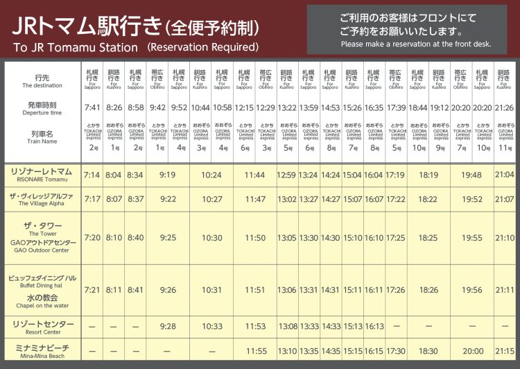 【全便予約制・無料】JRトマム駅までの送迎バスです。