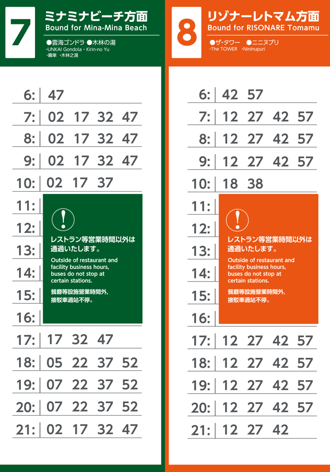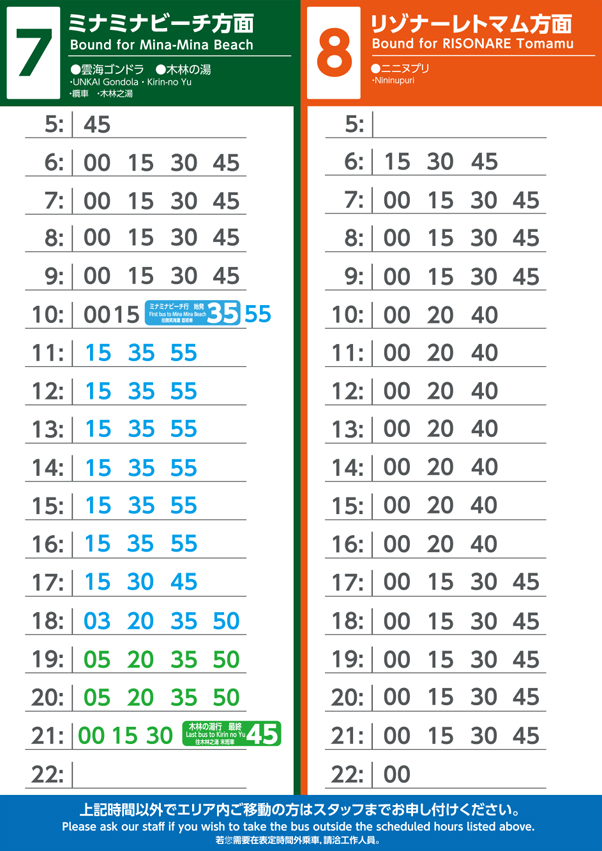 所有巴士需要事先預約,並付費。方便前往北海道各地。