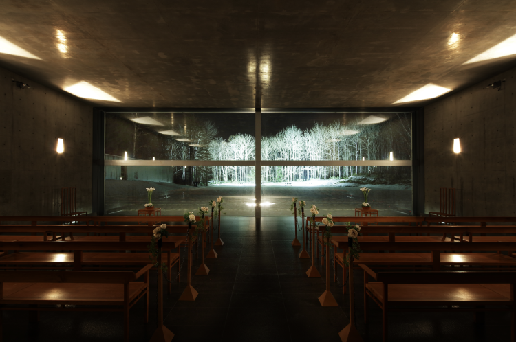 「いつの間にか素直な気持ちになれる場所」、水の教会での幻想的なひとときをお楽しみください。