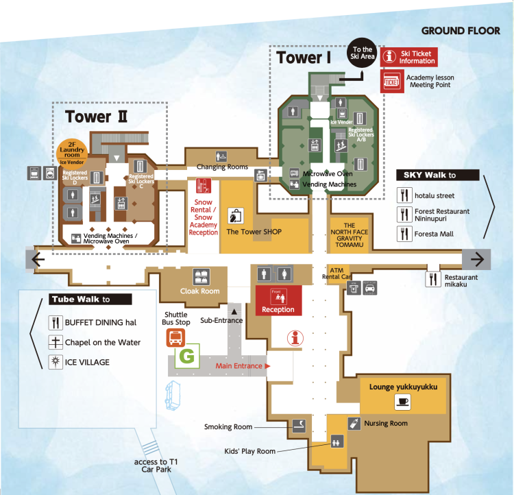 At the Information Counter on the Lobby floor, 6:00-20:00.