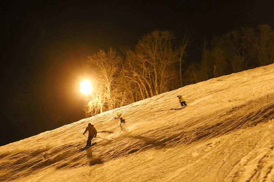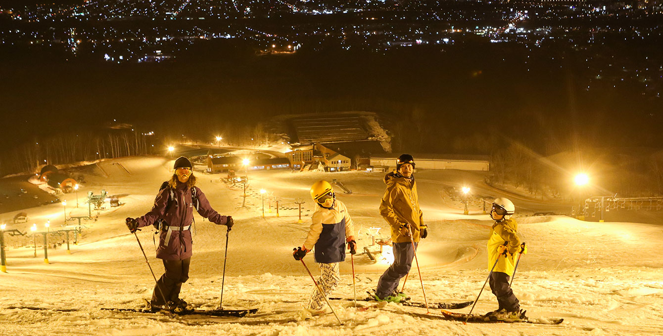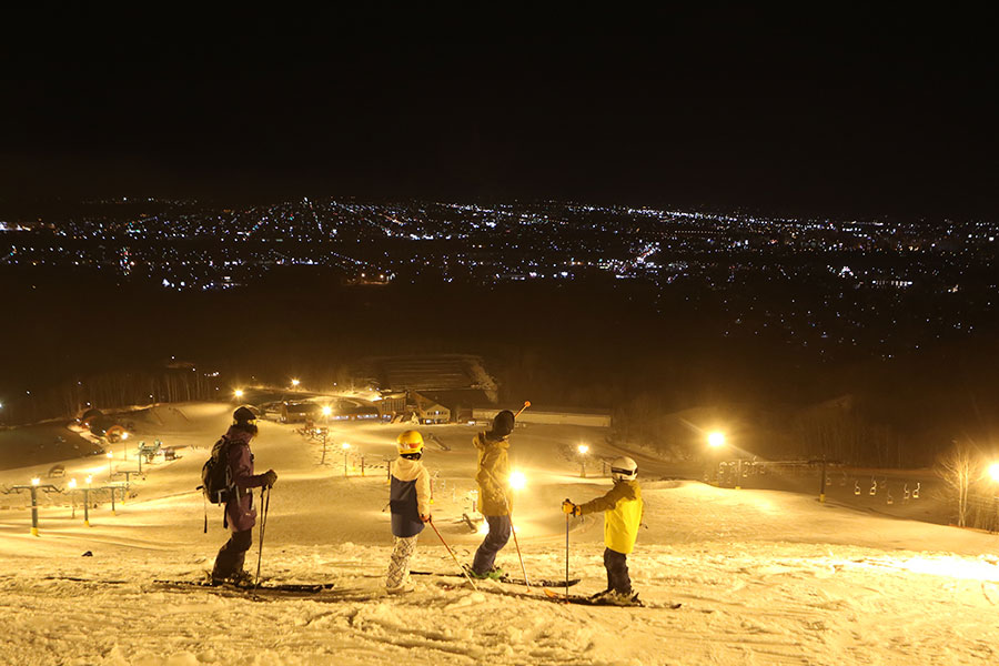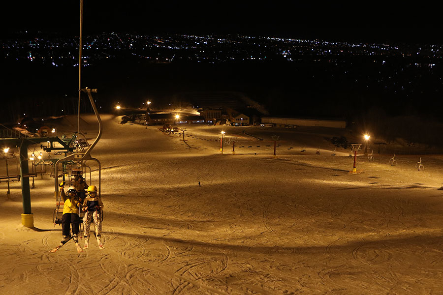 最近ではナイター営業を行うスキー場も減ってきましたが、ナイトスキーの高揚感って特別なのです。古瀬ファミリーも、北の大地の空気感と、幻想的なナイター照明にワクワクが高まるばかり。