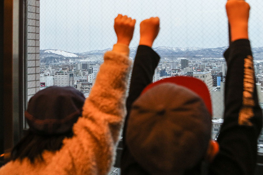 遊び道具を満載に積み込んだ松本ナンバーのワンボックスカーが旭川のホテルに到着しました。仕事の都合で途中参加のお父さんを旭川空港でピックアップし、札幌から移動してきたお母さんに子供たち。ヒュウジとミソラは口々に、ここまでの旅のエピソードを楽しそうに話してくれます。