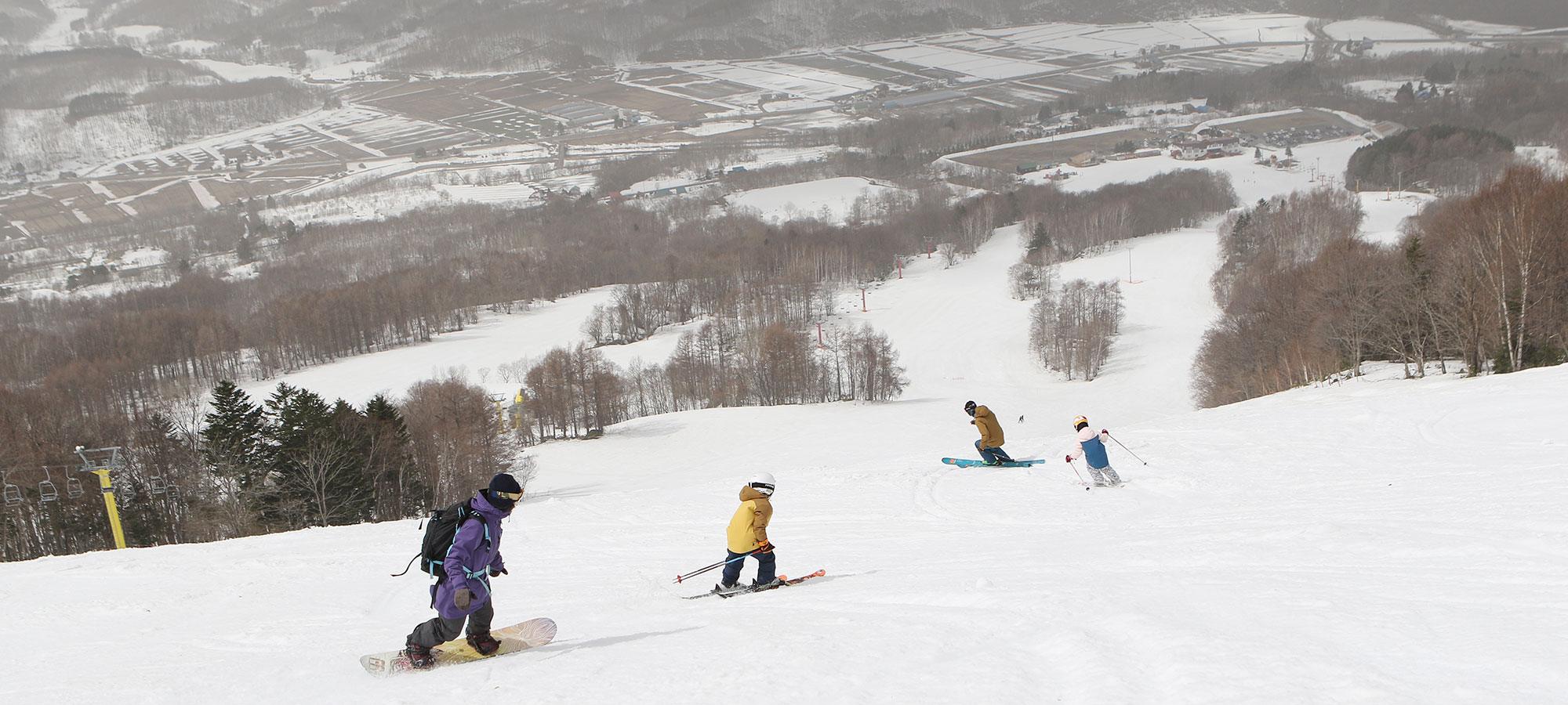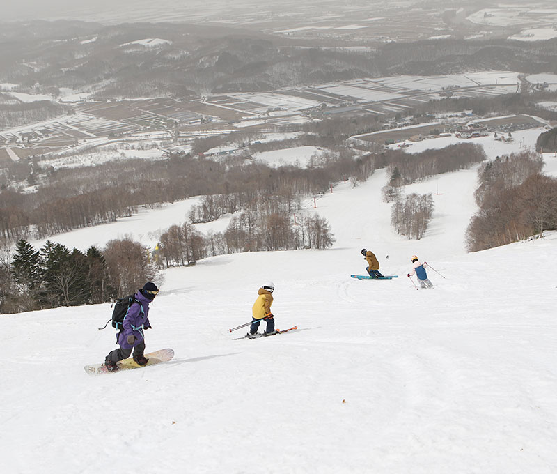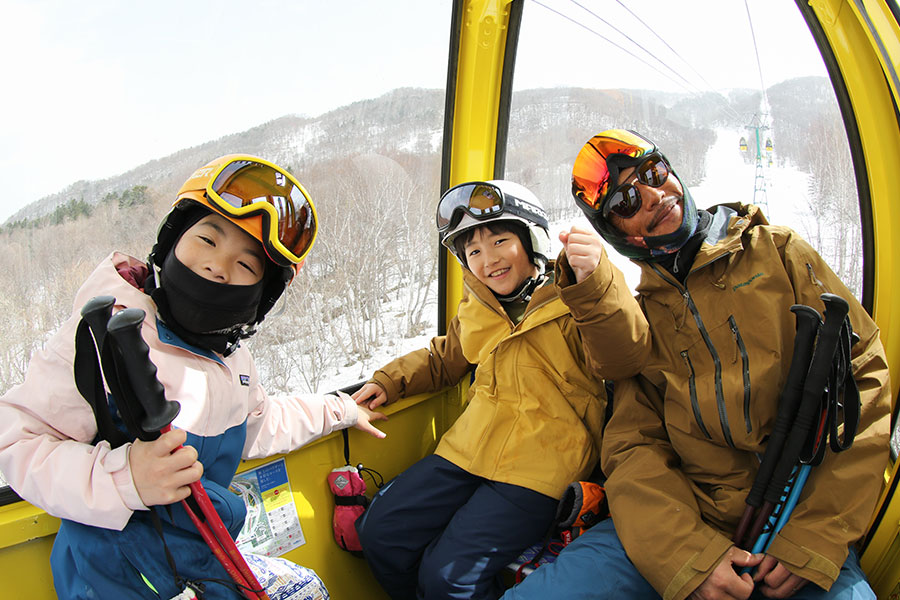冬の間、お父さんはスキーガイドで忙しく、子供たちと一緒に滑る時間も限られています。ゲレンデの自然地形を使って飛んだり、跳ねたり、スピードを出したりと、アグレッシブに滑るお父さんの背中を追いかけながら、子供たちも生き生きと滑っていました。お母さんもそんな3人を微笑ましく見守り、スノーボードで大きなターンを描きます。