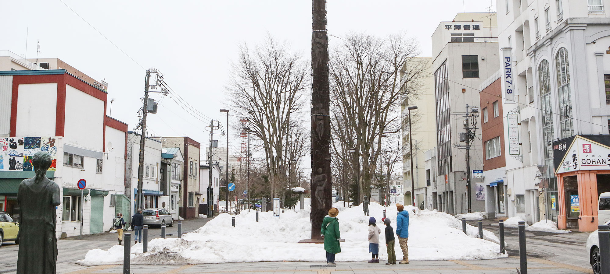 日本初の歩行者天国を歩き、昔は戦車が通っていたという大通りの歴史を学び、薬屋とハンコ屋が多い理由を考察し、“雪割り”をする旭川市民に触れ、彫刻の街と呼ばれる由来を知り・・・。グリーンレンジャーの解説を、書き留めていたミソラのノートは取材メモでぎっしり!