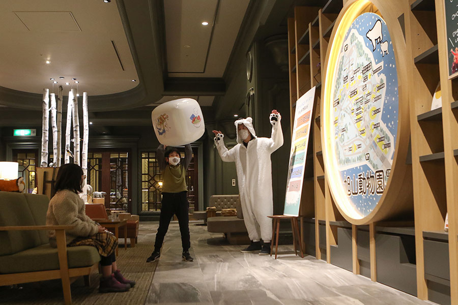 約束の時間になるとホテルのロビーにOMOレンジャー“グリーン”が登場! アクティビティのテーマによって、5色のレンジャーが出動します。大人はぜひ、『酒場ツアー』や『旭川はしごラーメンツアー』などもチェックしたいところ。