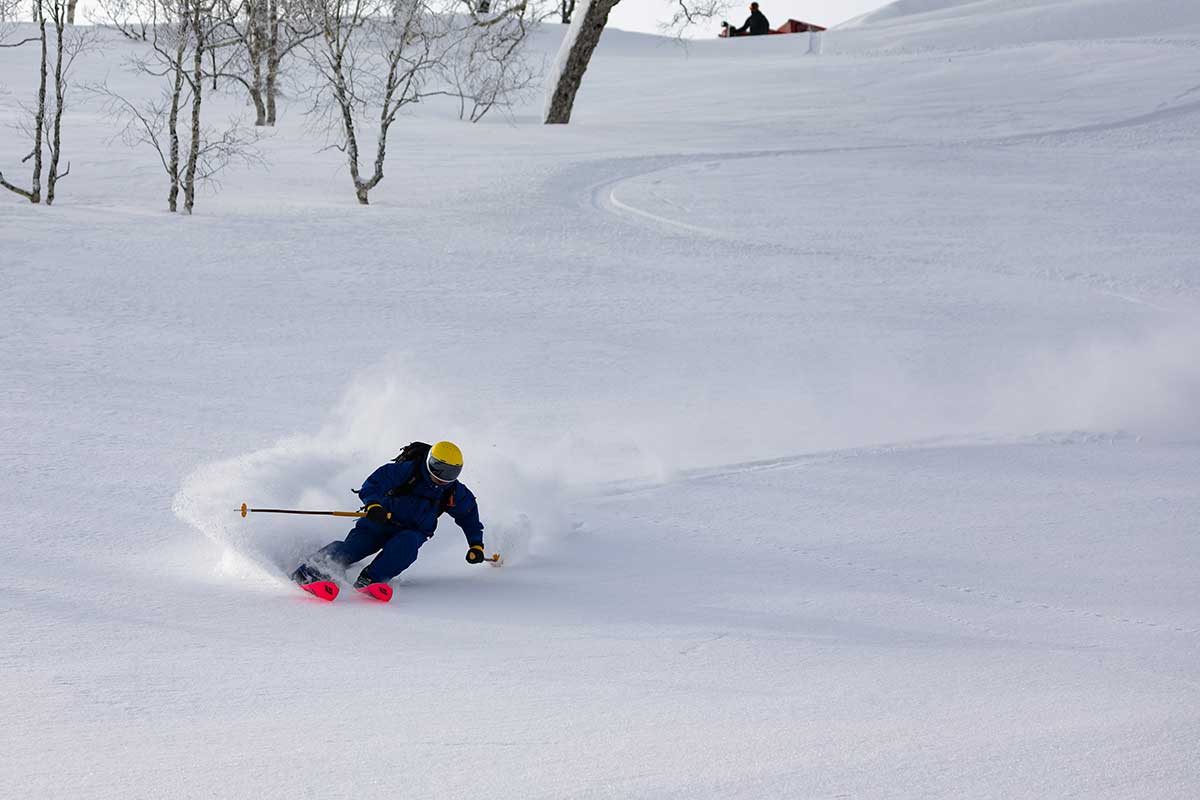 秋庭- そうだと思います。滑り出すと、スプレーが頭の上まで巻き上がるんですよ。それでも軽々としていてふわりと舞うから、まったく抵抗を受けずに進んでいける。そんな軽くてドライな雪は北海道パウダーベルトならでは。やっぱりニセコとも違いますね。