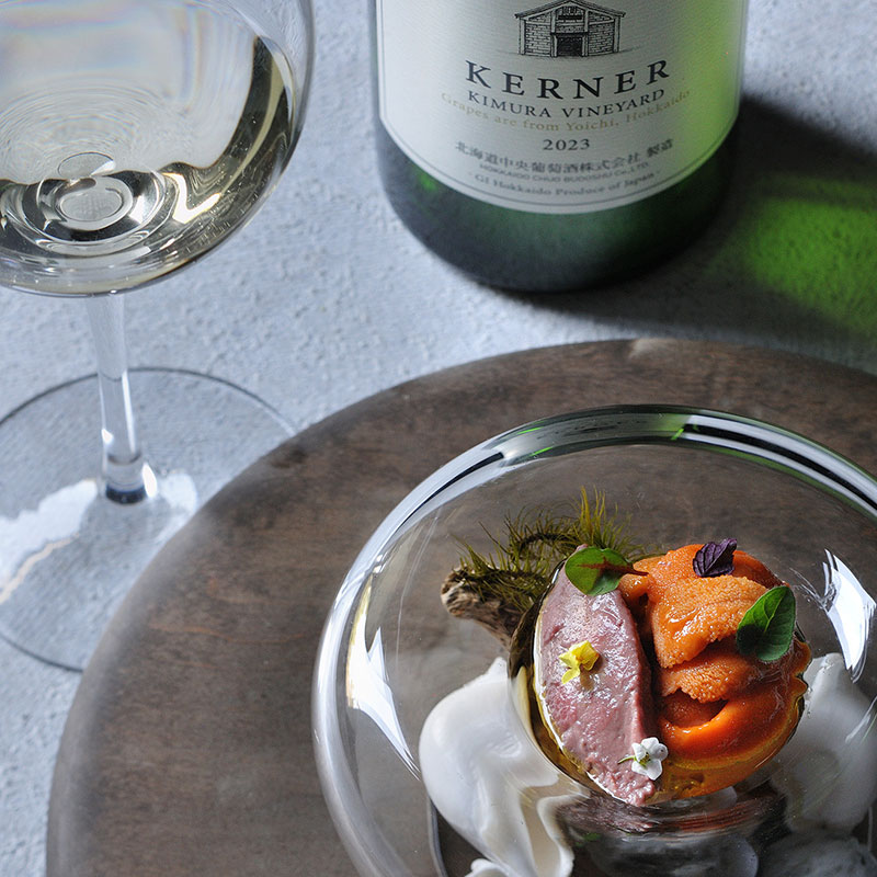 北海道の旬の食材やイタリア料理の技法を掛け合わせたコースを提供しています。