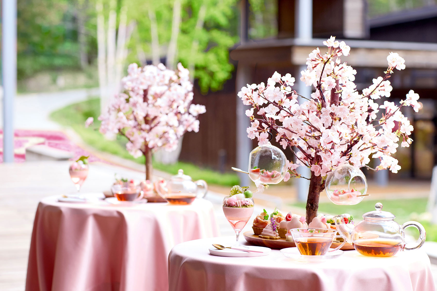春の訪れを祝う、特別なティータイムをご用意しました。 今年は、テラス席から花咲く絨毯を眺めながら、新登場の桜と団子のパルフェや限定のフレーバードティーを味わえます。優雅なひとときをお過ごしください 。