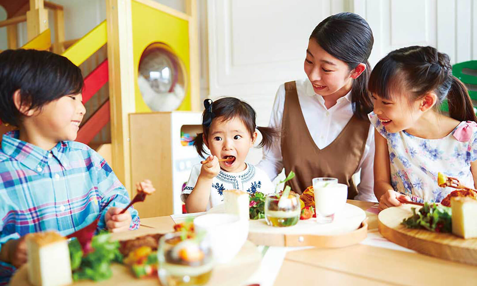 ナーサリースタッフが常駐しているため、お子さま連れのお客さまも安心してゆっくりと食事ができ、お子さまは安全に遊ぶことができます。気兼ねなく利用できるよう、無料で提供します。