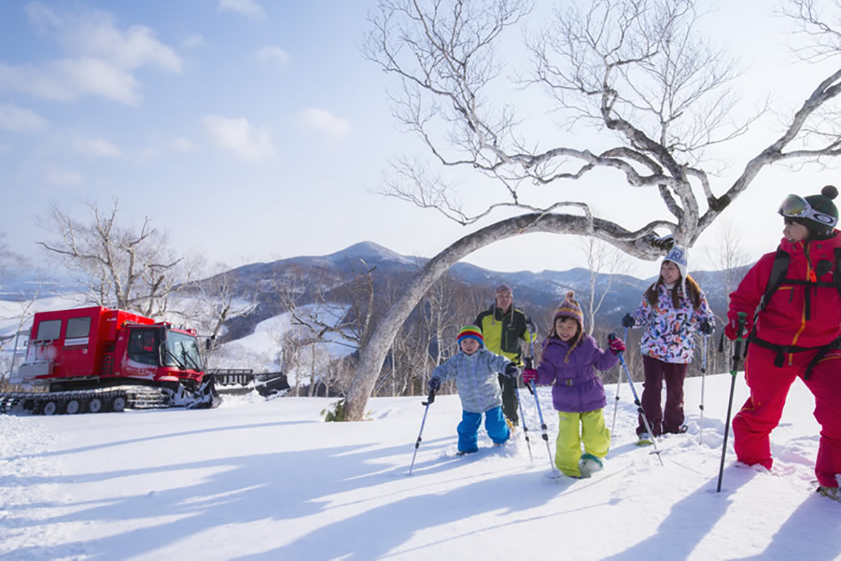 雪上車で狩振岳山麓の白銀の森へ。ふかふかの新雪をスノーシューで散策したり、斜面を滑り降りたりと、冬の大自然を遊び尽くすツアーです。山奥のパオでは温かいランチをご用意しています。