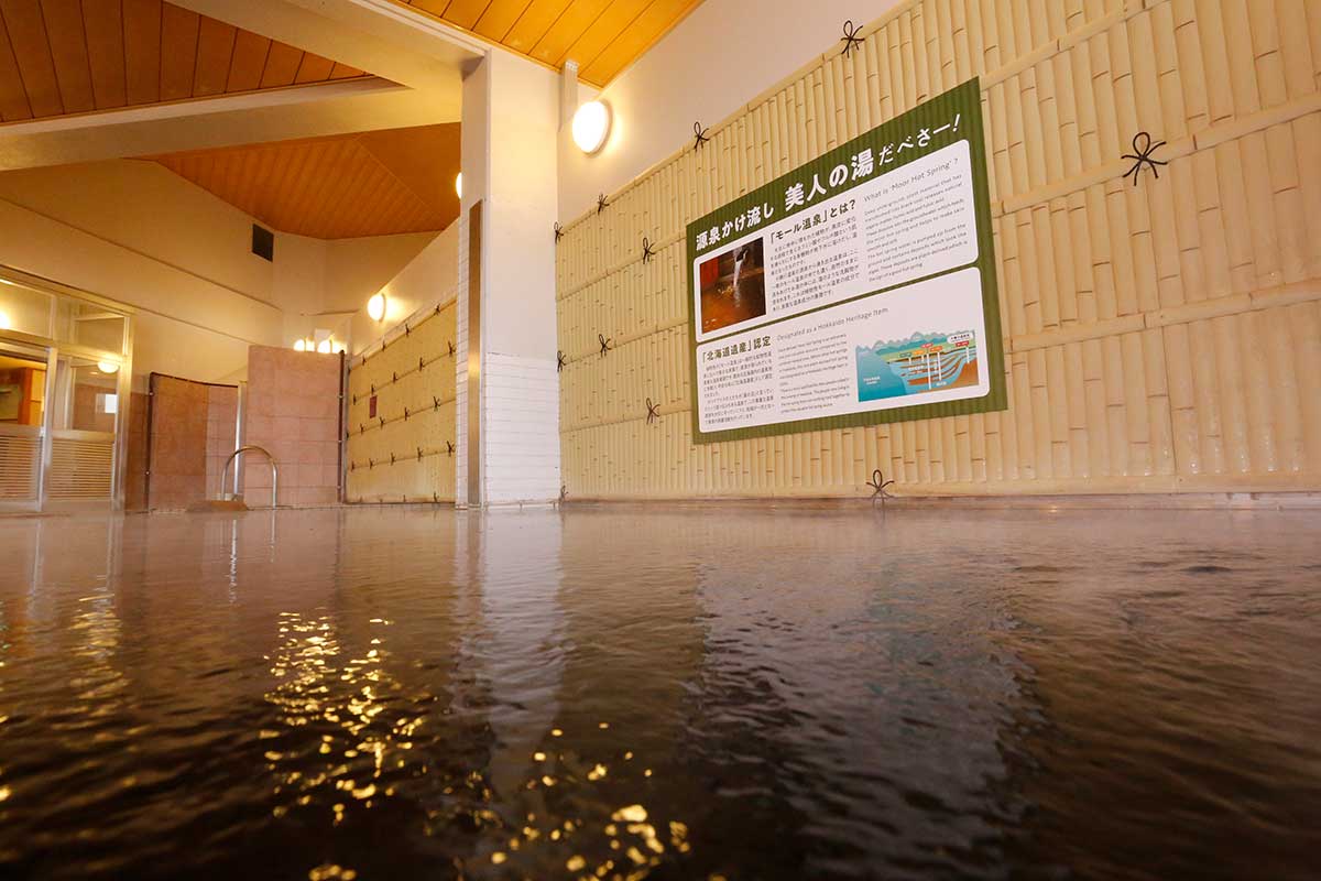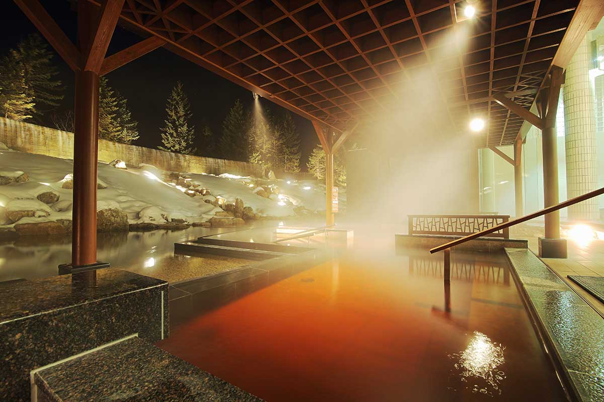 トマムから約1時間15分。北海道遺産にも認定された「十勝川温泉」へ無料送迎バスをご用意しました。湯上がりは肌がつるつるすべすべに。“美人の湯”と称される奇跡のモール温泉で、癒しのひとときをお過ごしください。