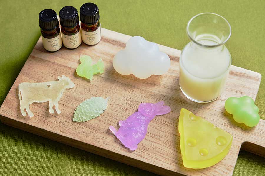 ファーム星野のホエイを使った石けんづくり。好みの色や香りを加え、自分だけの石けんがつくれます。